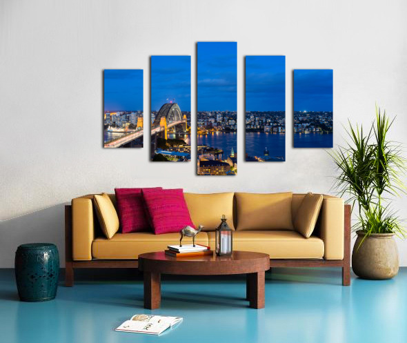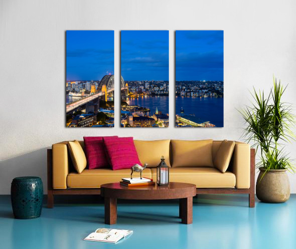 Dramatic panoramic night photo Sydney harbor Canvas print