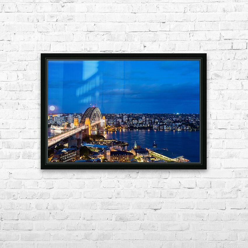 Dramatic panoramic night photo Sydney harbor Picture Frame Printing
