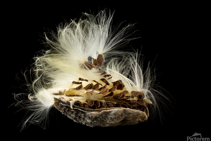 ABOUT THIS ARTWORK: MACRO PHOTO OF SWAMP MILKWEED SEED POD
