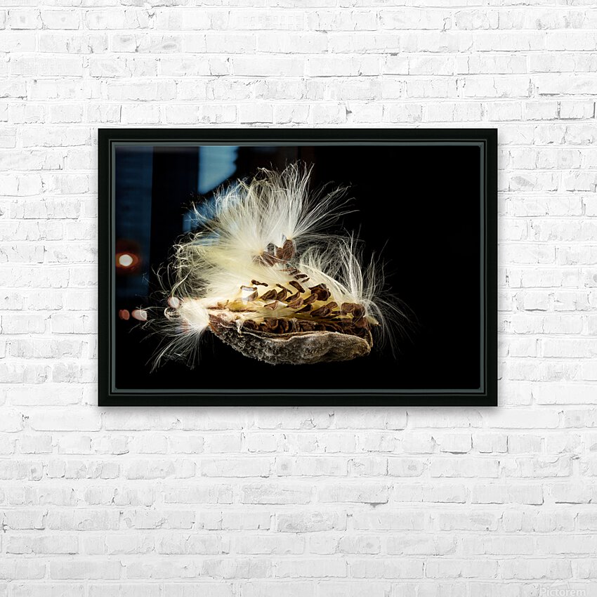 Macro photo of swamp milkweed seed pod Frame print