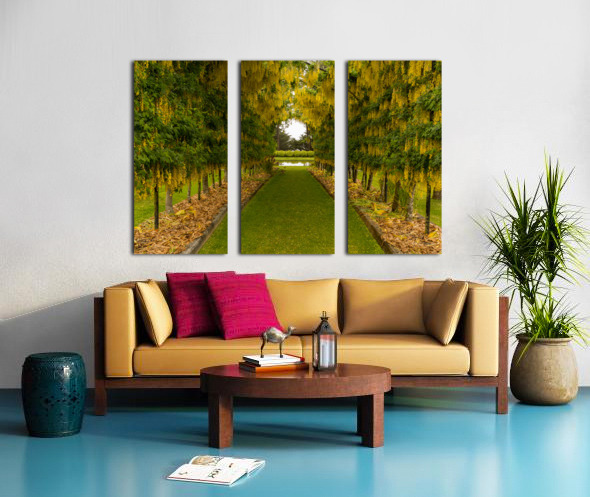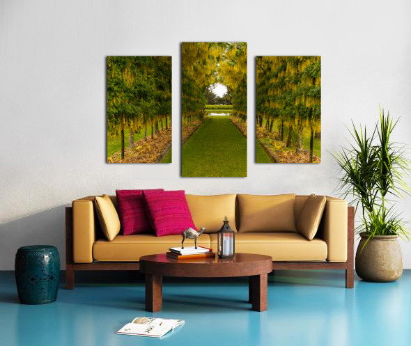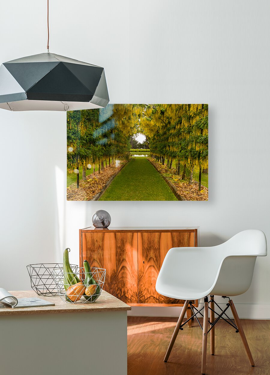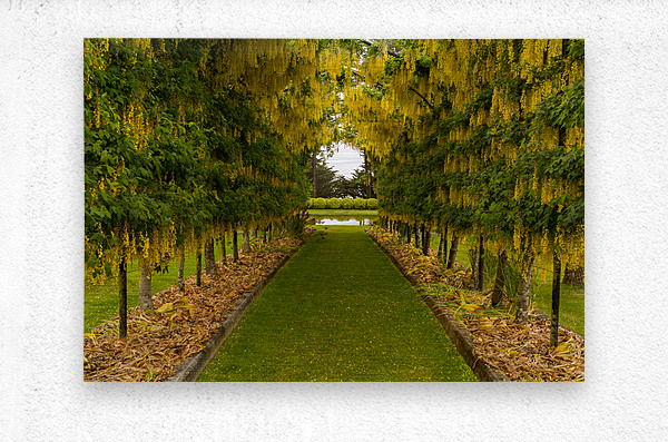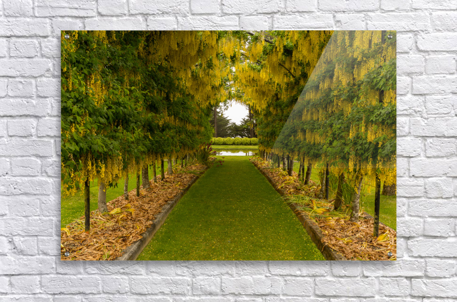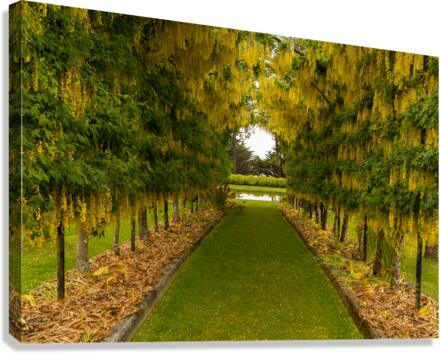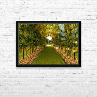 Get this artwork "Laburnum Arch in full bloom over grass path" in a framed print.