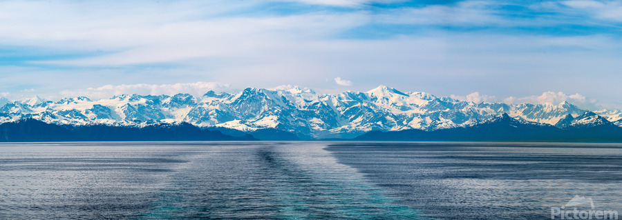Get this artwork "Cruise boat wake leaving Prince William Sound and Valdez" in a framed print.
