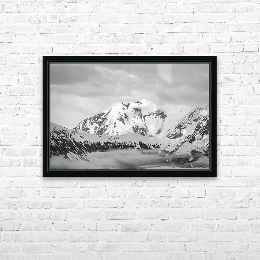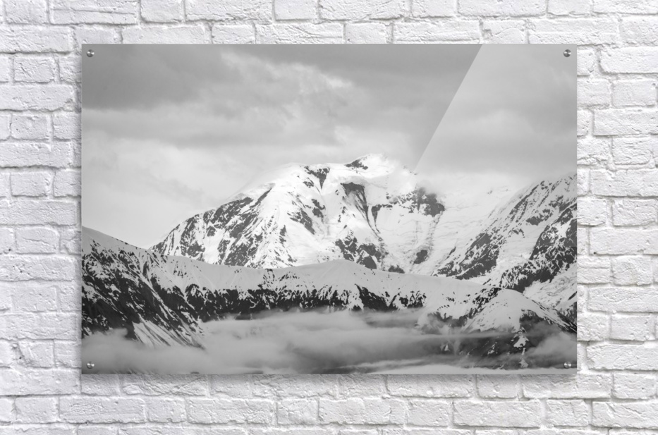 Get this artwork "Black and white view of the mountains above Hubbard Glacier" in a framed print.