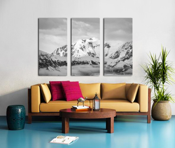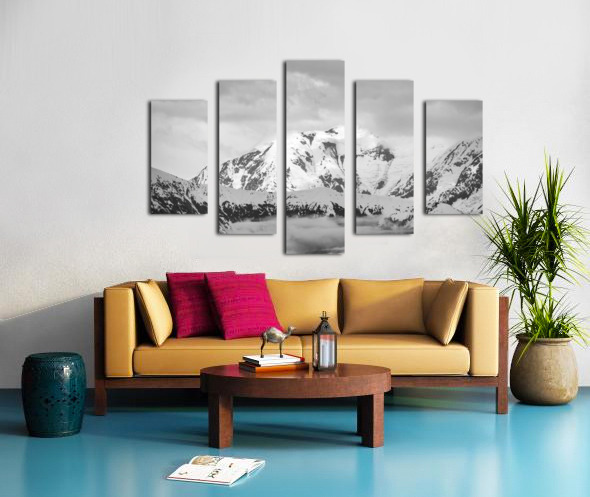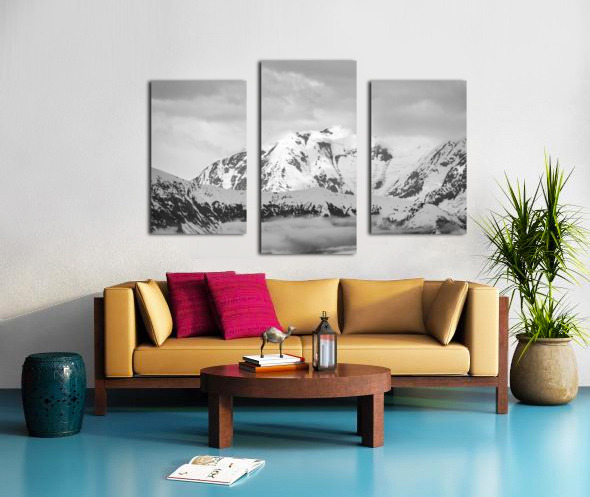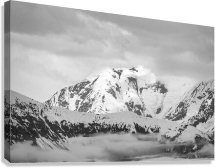 Black and white view of the mountains above Hubbard Glacier Canvas print