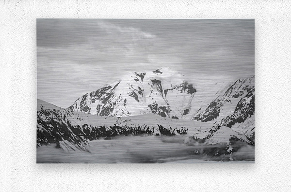 ABOUT THIS ARTWORK: BLACK AND WHITE VIEW OF THE MOUNTAINS ABOVE HUBBARD GLACIER