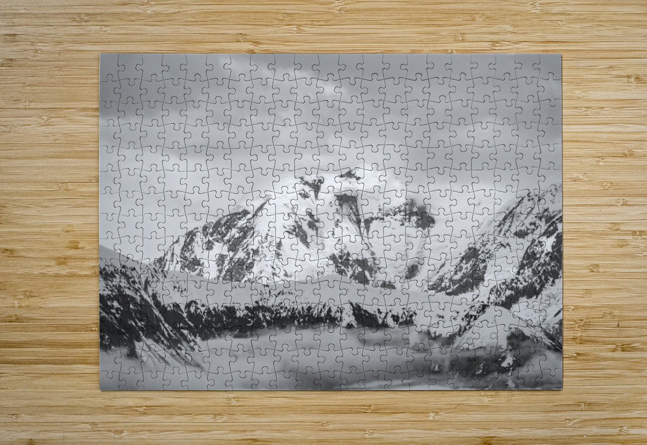 Black and white view of the mountains above Hubbard Glacier Steve Heap Puzzle printing
