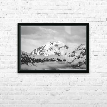 Black and white view of the mountains above Hubbard Glacier Picture Frame Printing