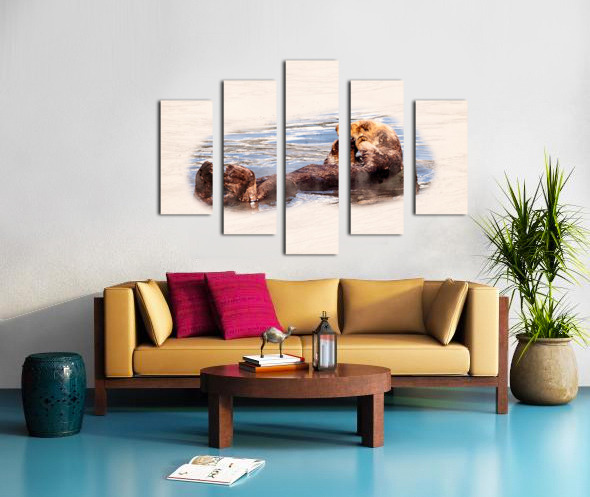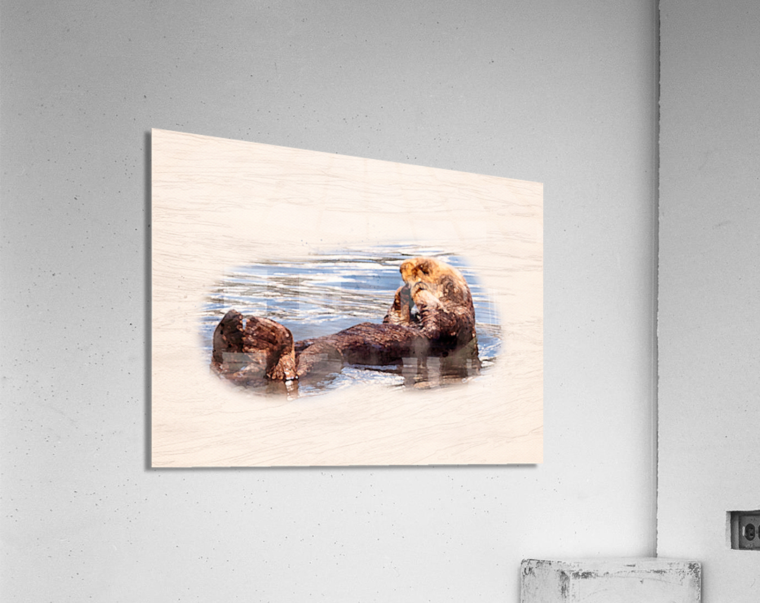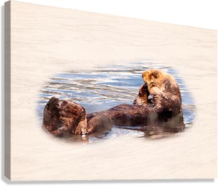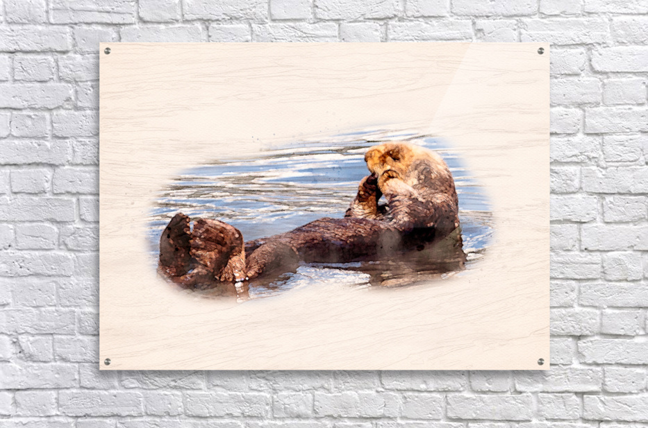 Get this artwork "Digital watercolor of Sea Otter floating in the sea" in a framed print.