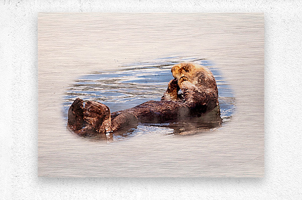 ABOUT THIS ARTWORK: DIGITAL WATERCOLOR OF SEA OTTER FLOATING IN THE SEA
