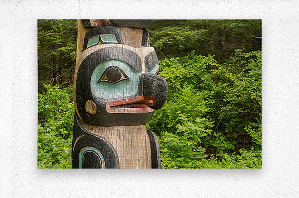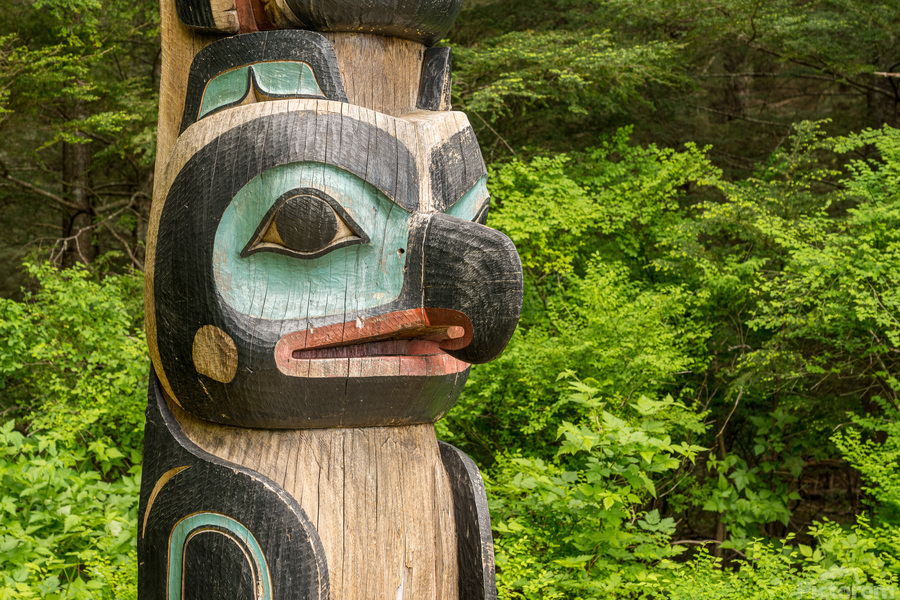 ABOUT THIS ARTWORK: DETAIL OF CARVED TOTEM POLE IN THE SITKA NATIONAL HISTORICAL PAR