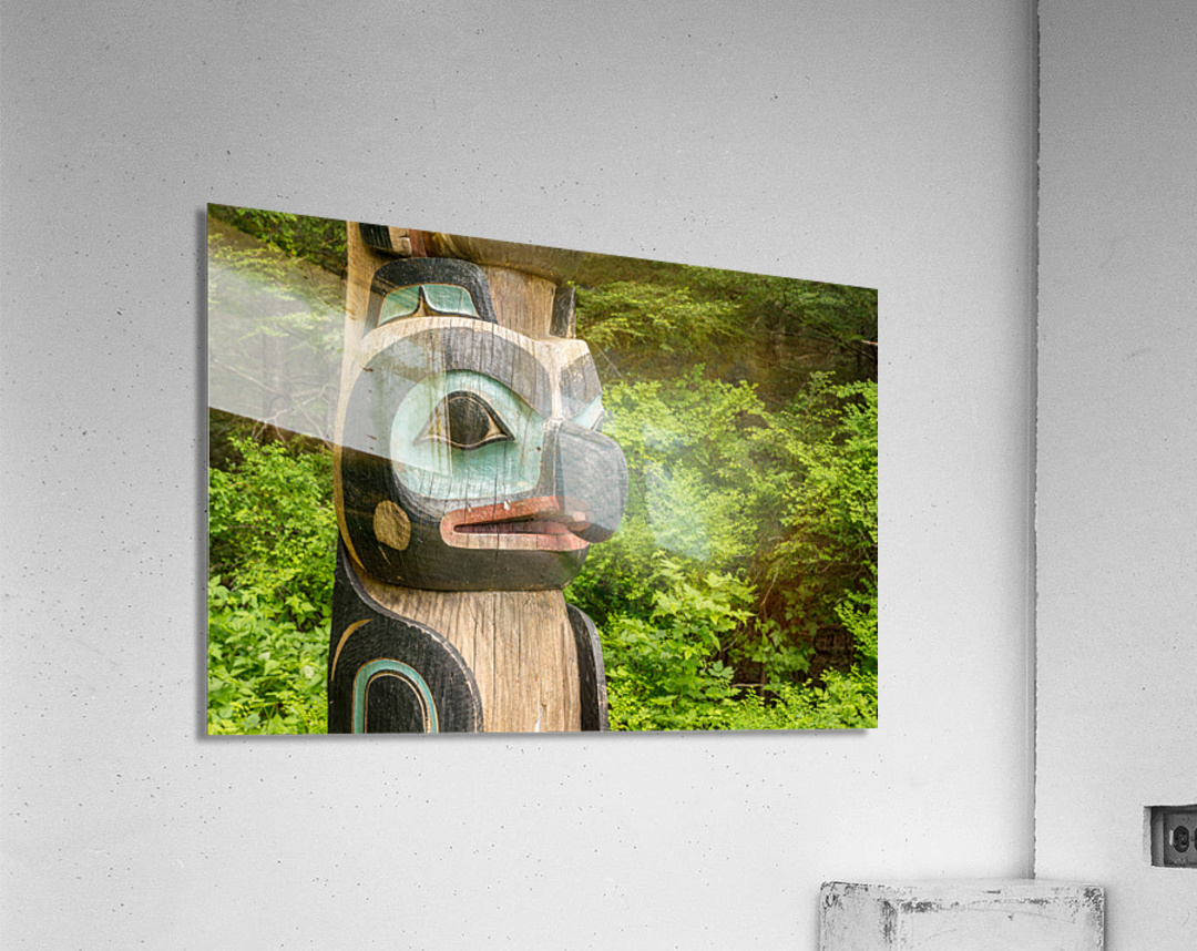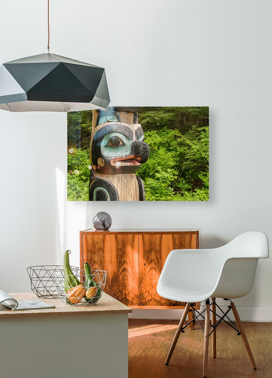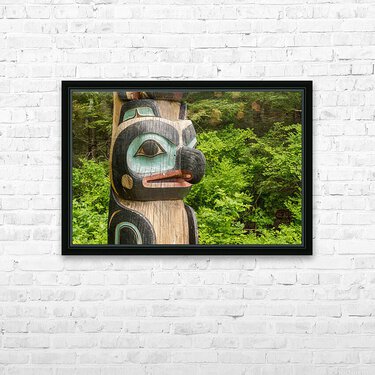 Detail of carved totem pole in the Sitka National Historical Par Picture Frame Printing