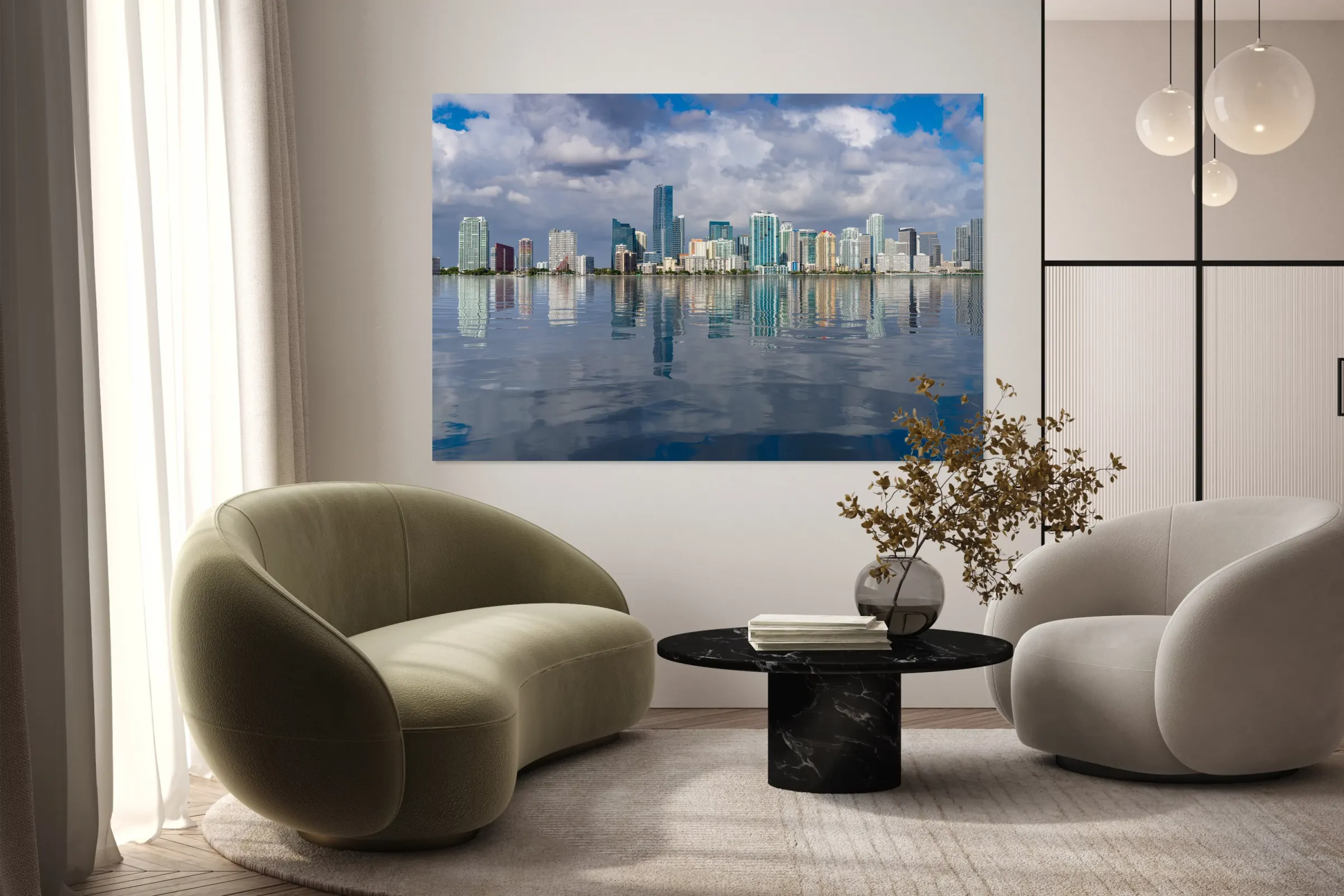 View of Miami Skyline with artificial reflection Picture Frame Printing