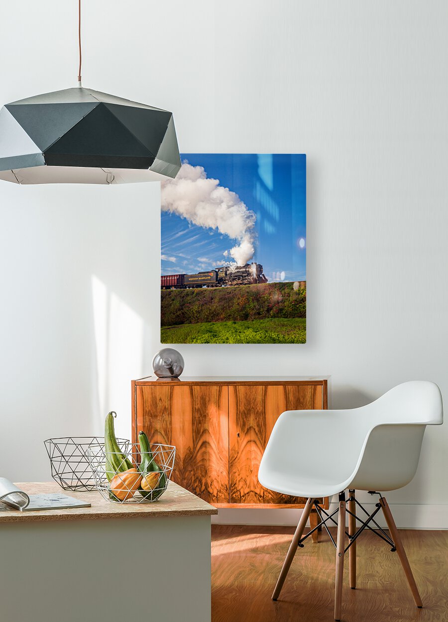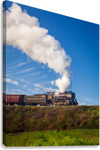 ABOUT THIS ARTWORK: WMRR STEAM TRAIN POWERS ALONG RAILWAY
