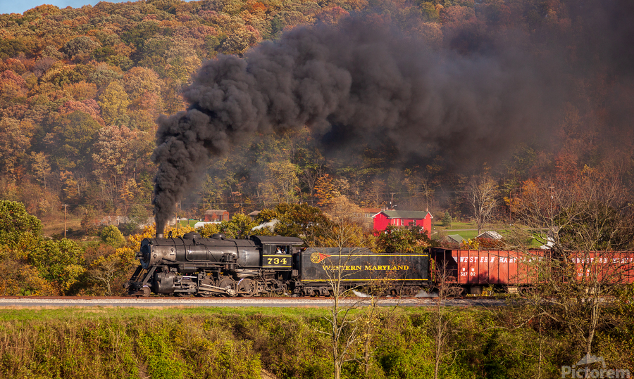 ABOUT THIS ARTWORK: WMRR STEAM TRAIN POWERS ALONG RAILWAY