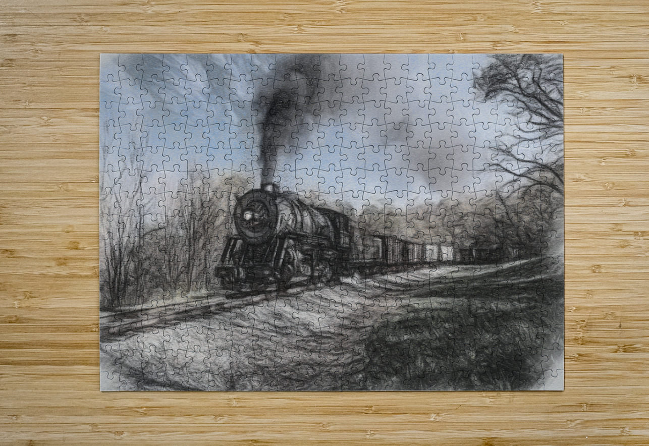 WMRR Steam train in charcoal sketch Steve Heap Puzzle printing