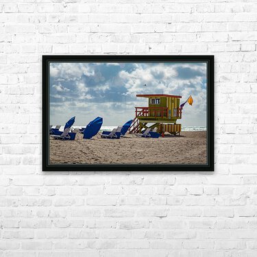 Yellow and green lifeguard station on Miami beach Frame print