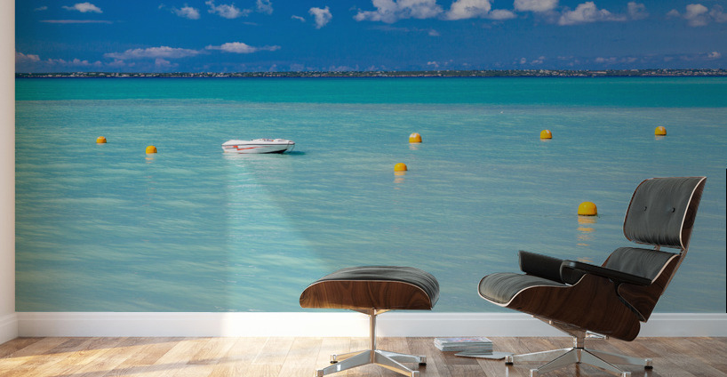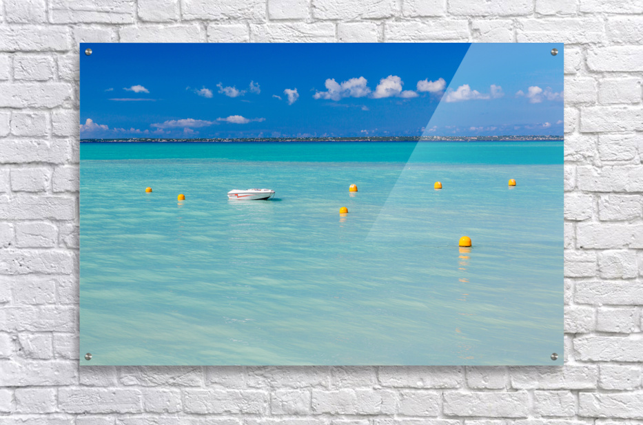 Get this artwork "Speedboat in calm sea off Grand Case St Martin" in a framed print.
