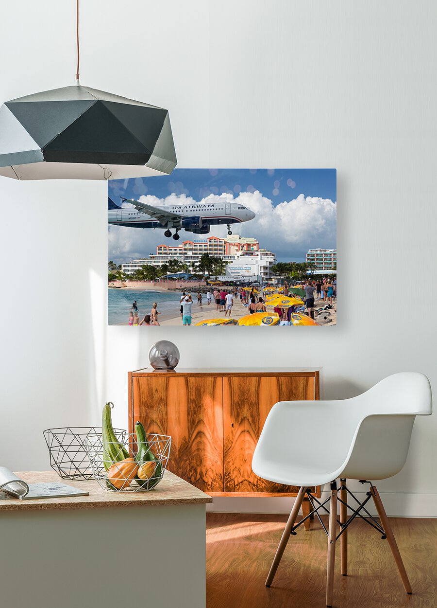ABOUT THIS ARTWORK: US AIRWAYS PLANE LANDS AT PRINCESS JULIANA AIRPORT ST MARTIN