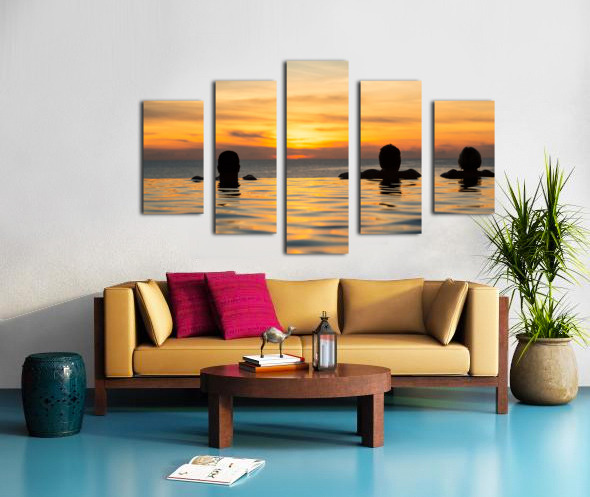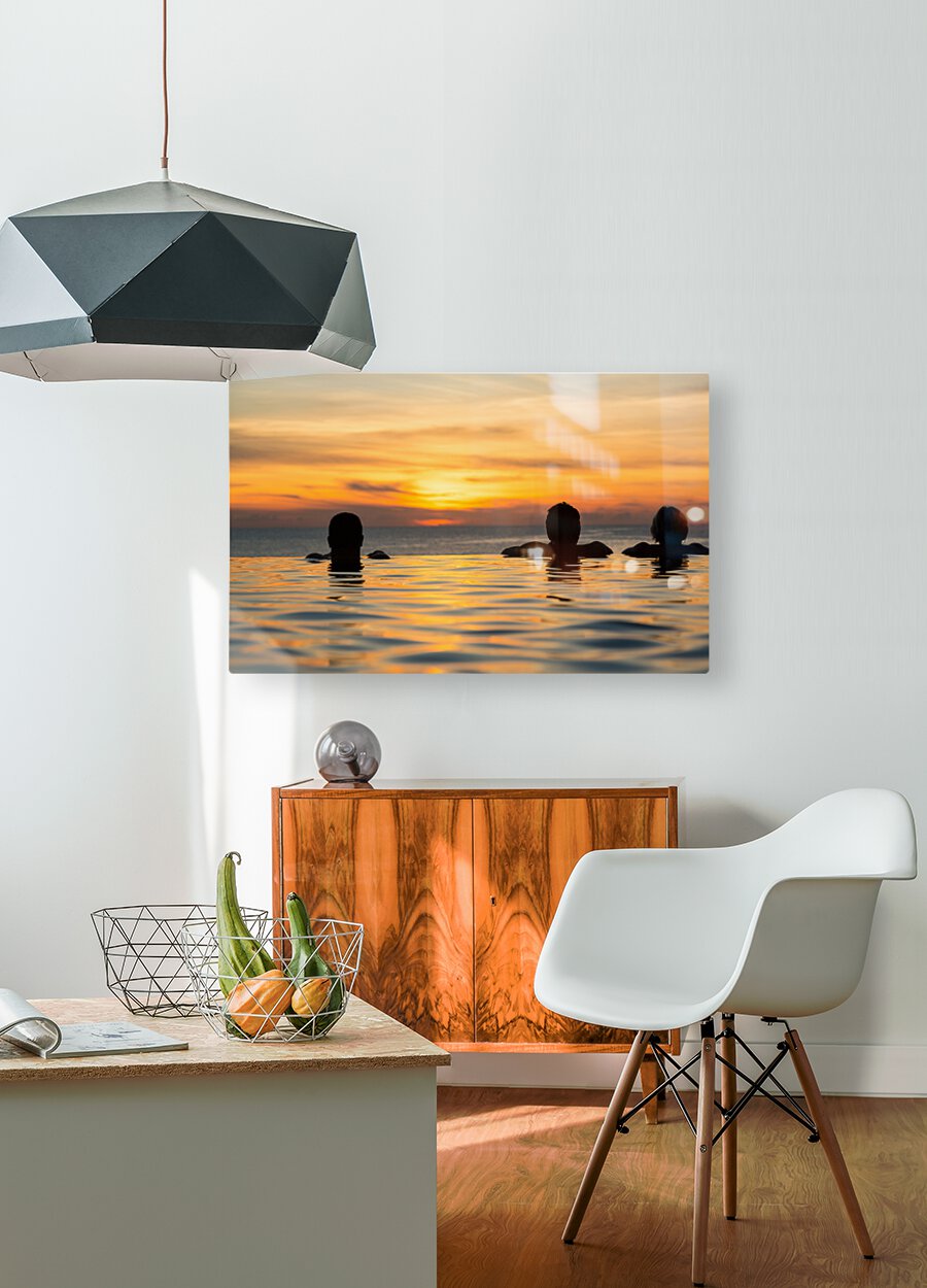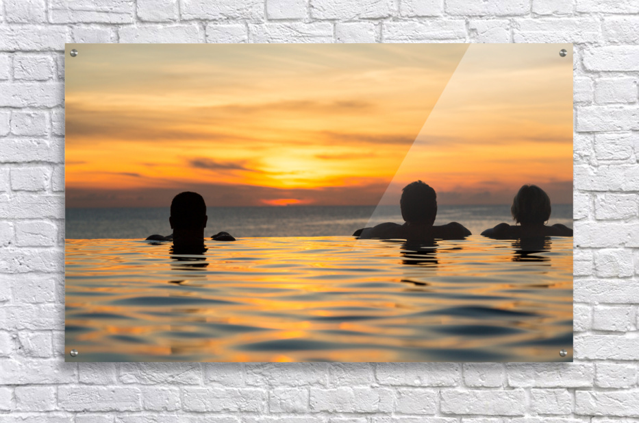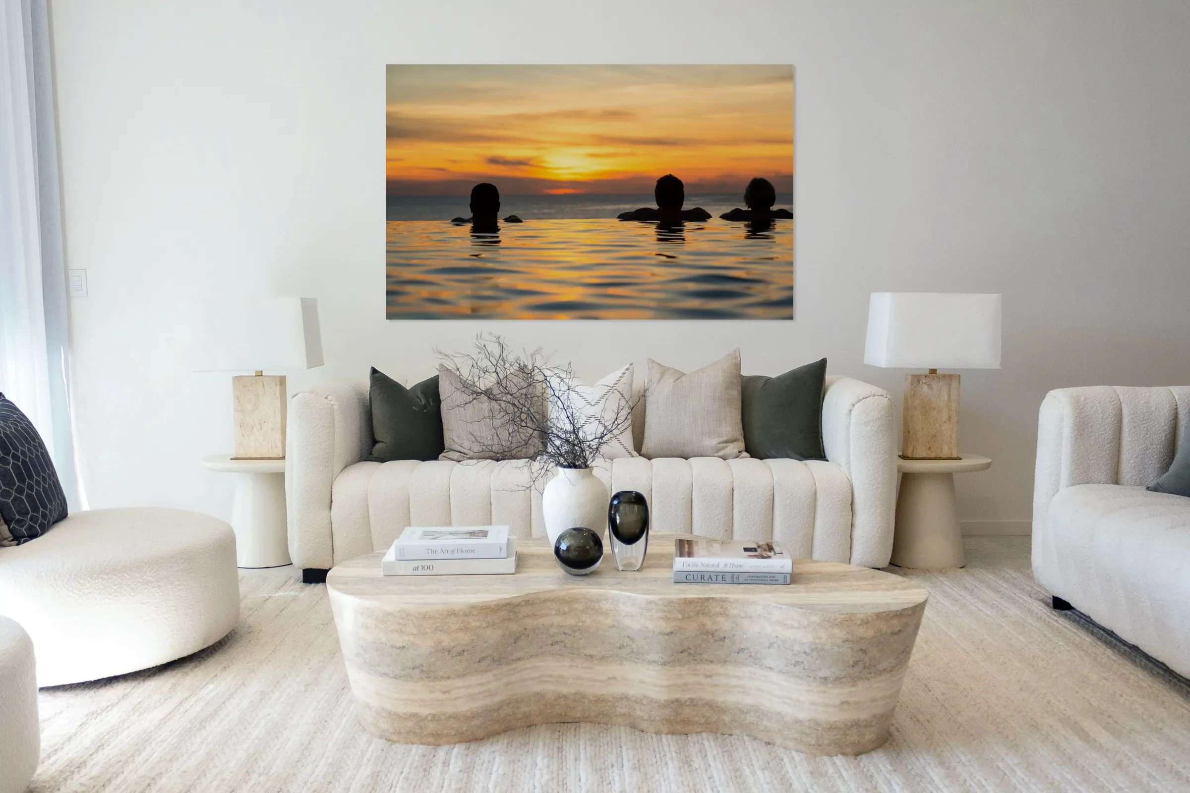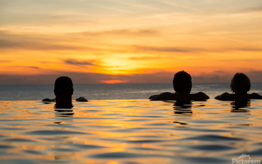 ABOUT THIS ARTWORK: SILHOUETTED HEADS AGAINST INFINITY EDGE POOL