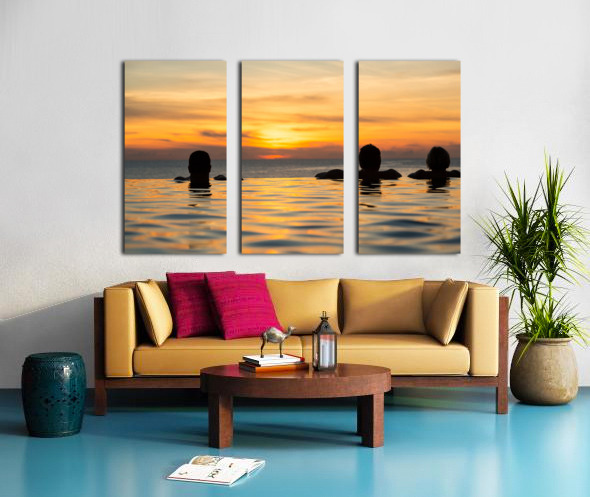 Get this artwork "Silhouetted heads against infinity edge pool" in a framed print.