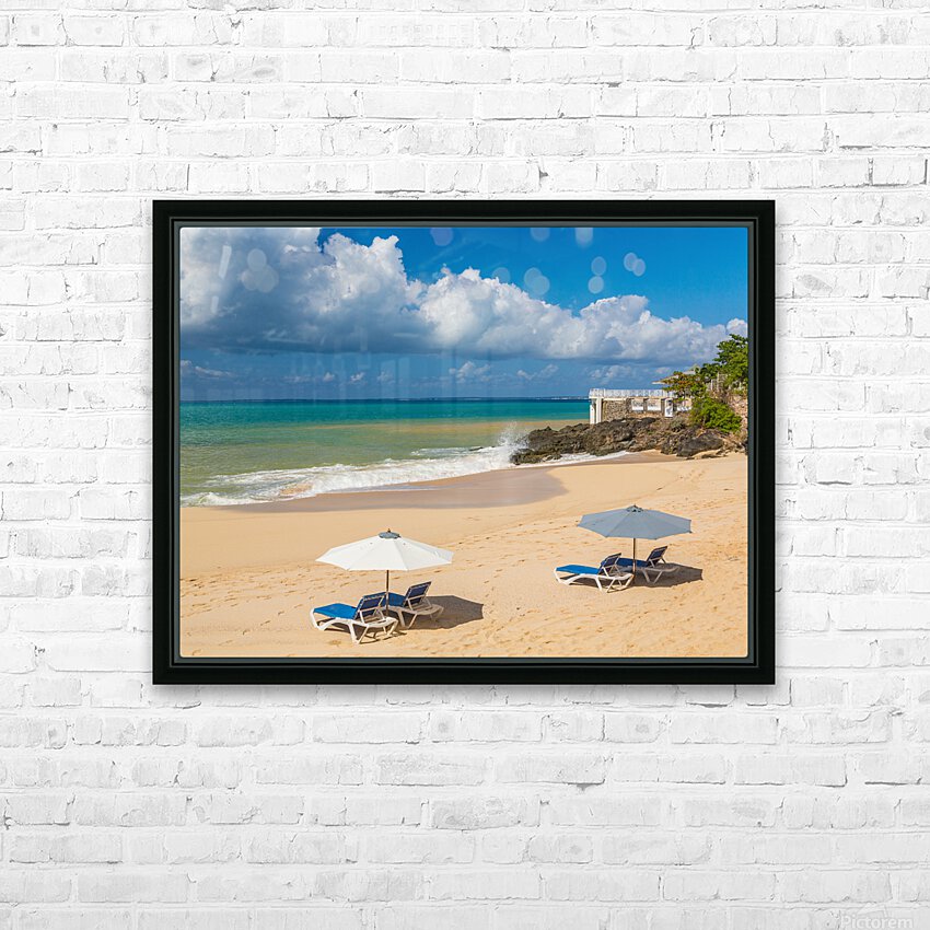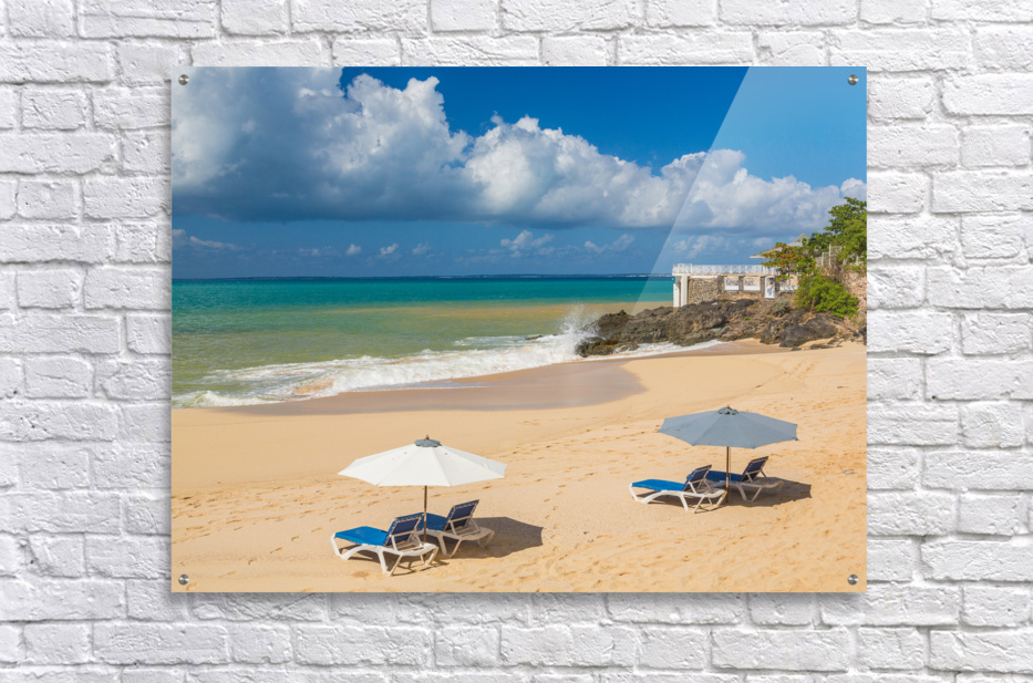 Reclining chairs and umbrella on Baie Rouge Picture Frame Printing