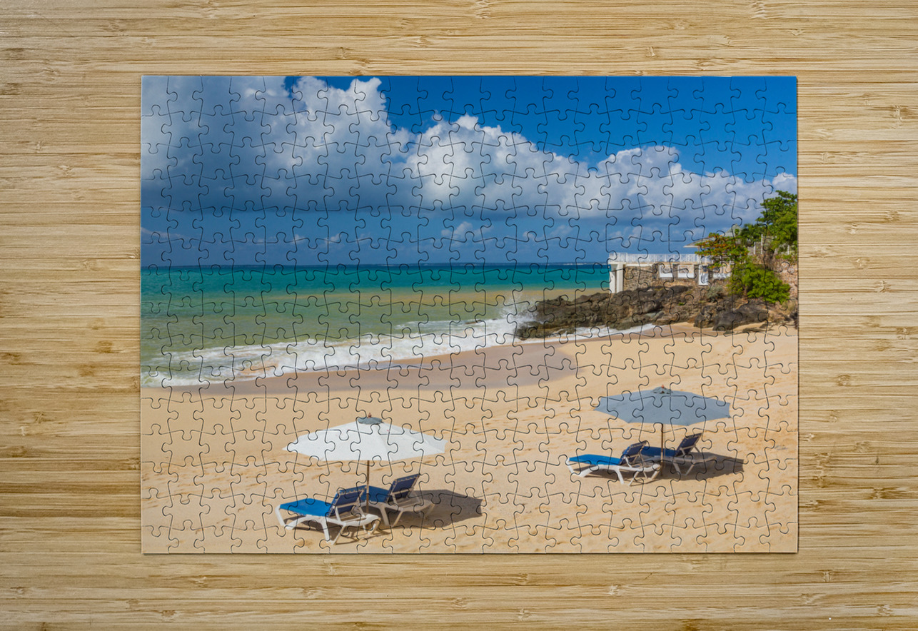Reclining chairs and umbrella on Baie Rouge Steve Heap Puzzle printing