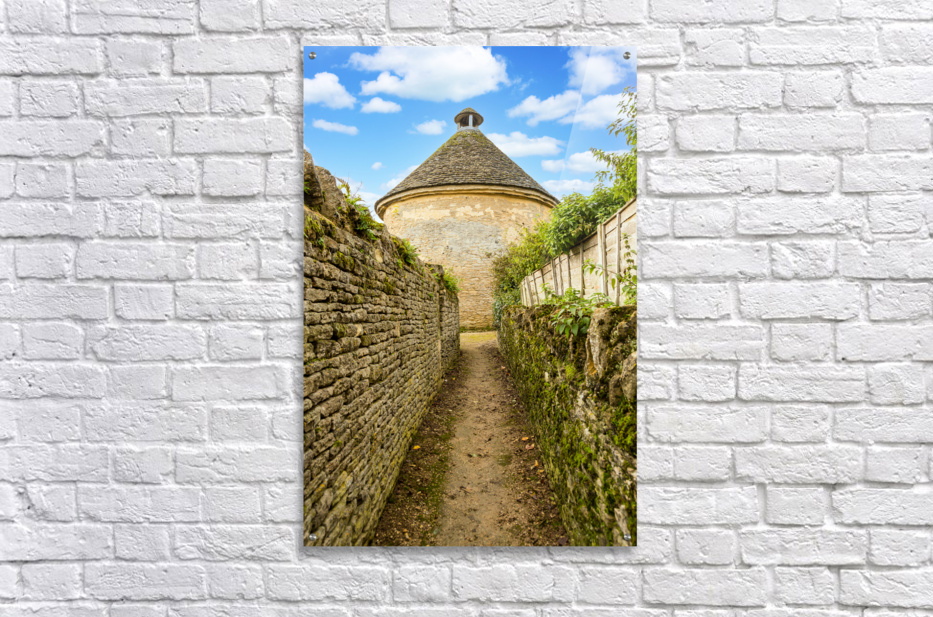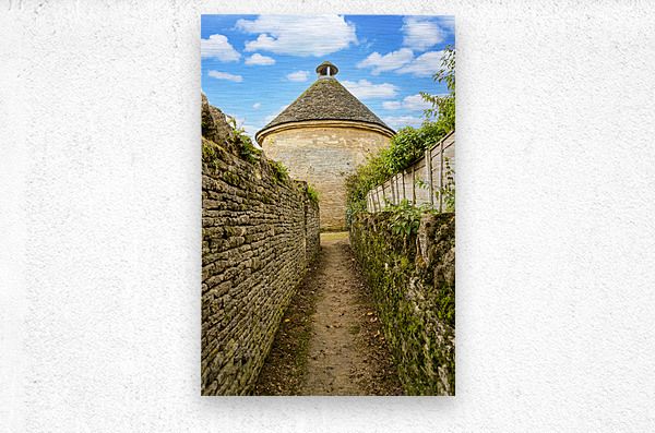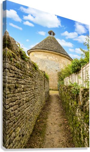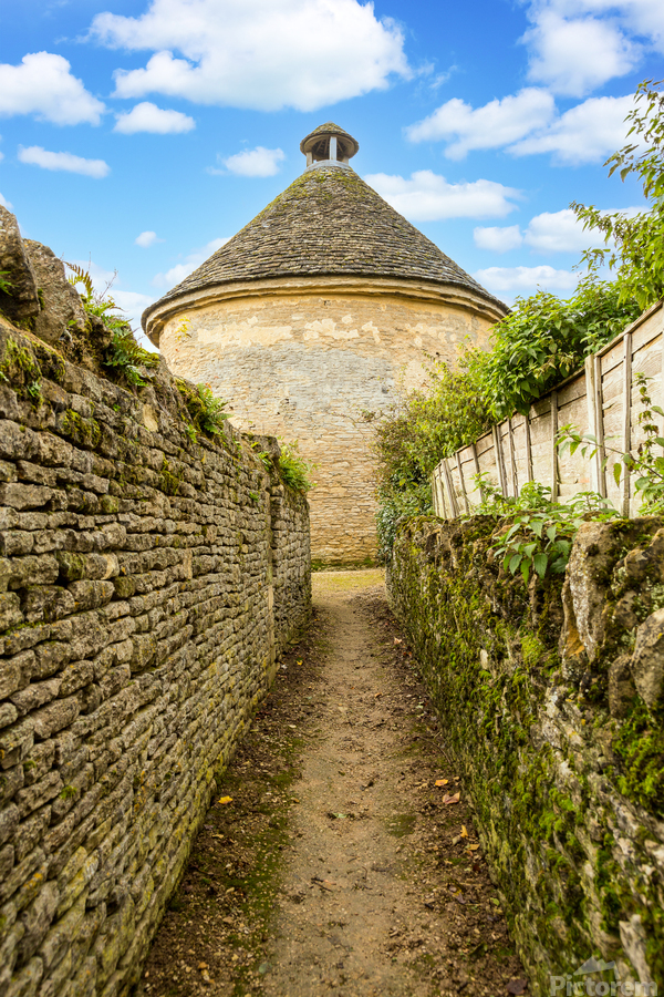 Dovecot of Minster Lovell in Cotswold village with traditional stone walls leading to the old building. This was used to house doves originally.