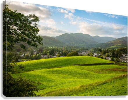 Get this artwork "View over fields to Ambleside Lake District" in a framed print.