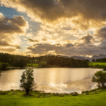 SUNSET AT LOUGHRIGG TARN IN LAKE DISTRICT