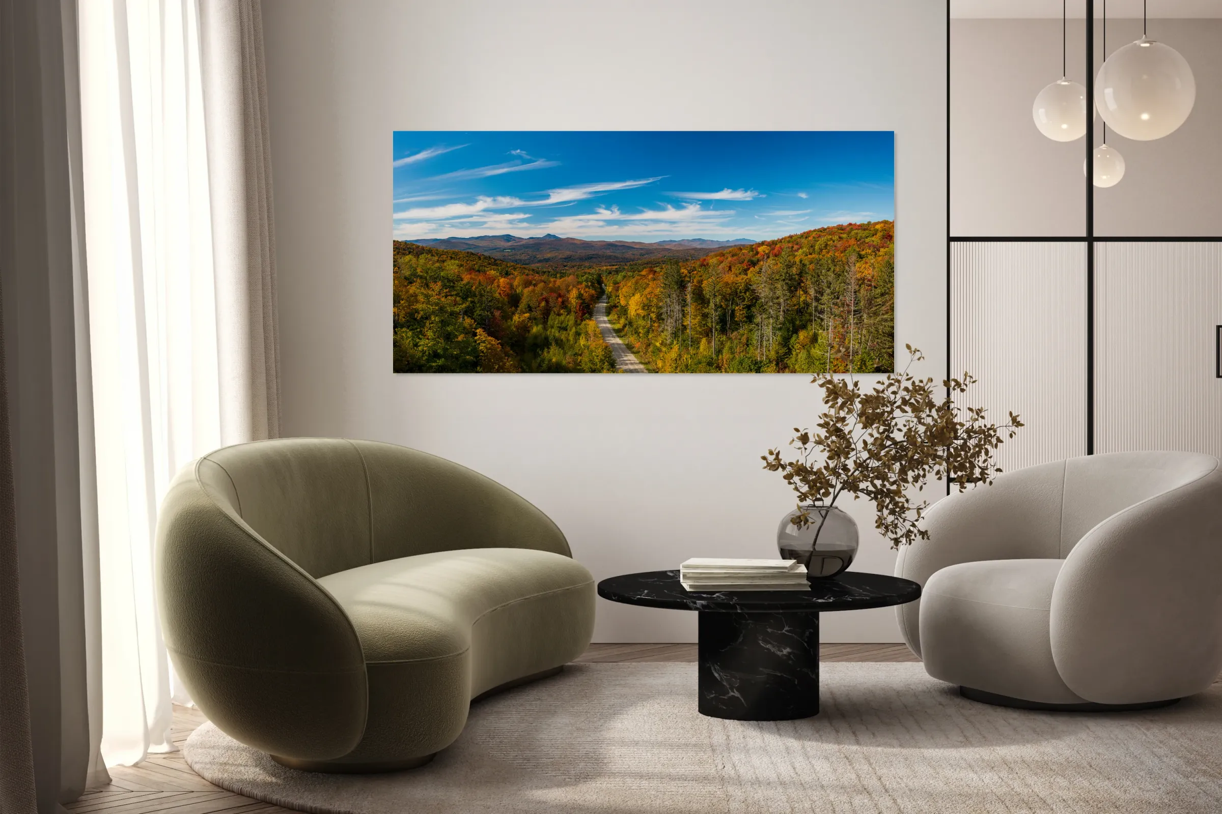 ABOUT THIS ARTWORK: AERIAL VIEW OF MORETOWN MOUNTAIN ROAD IN VERMONT