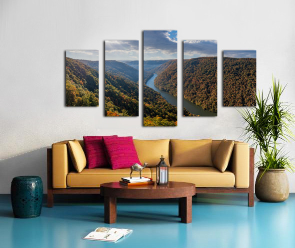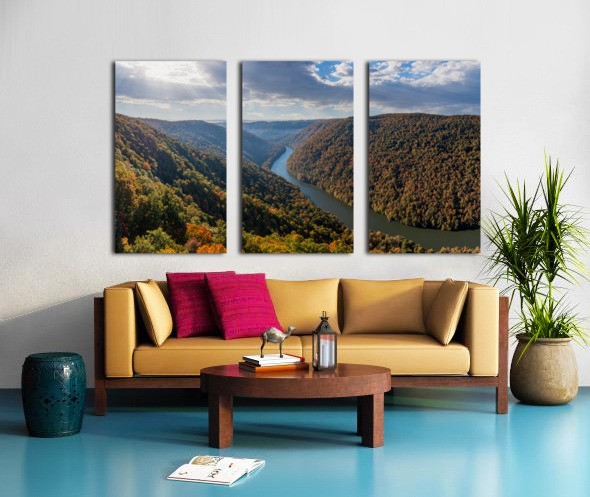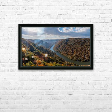 Get this artwork " Dramatic sunrise over Cheat River in West Virginia with fall colors" in a framed print.