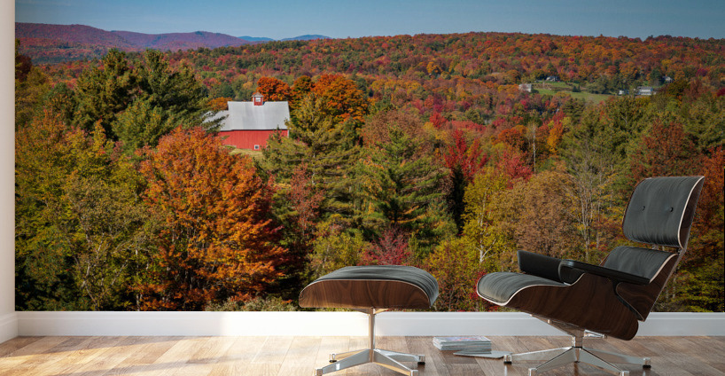 Get this artwork "Grandview Farm barn with fall colors in Vermont" in a framed print.