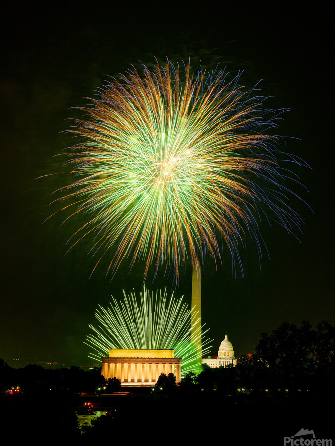 Get this artwork "Fireworks over Washington DC on July 4th" in a framed print.
