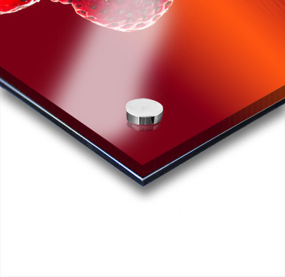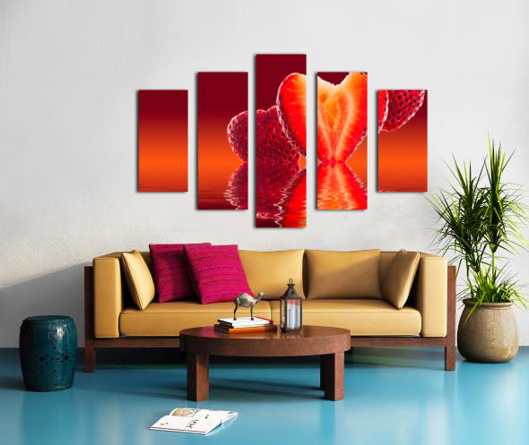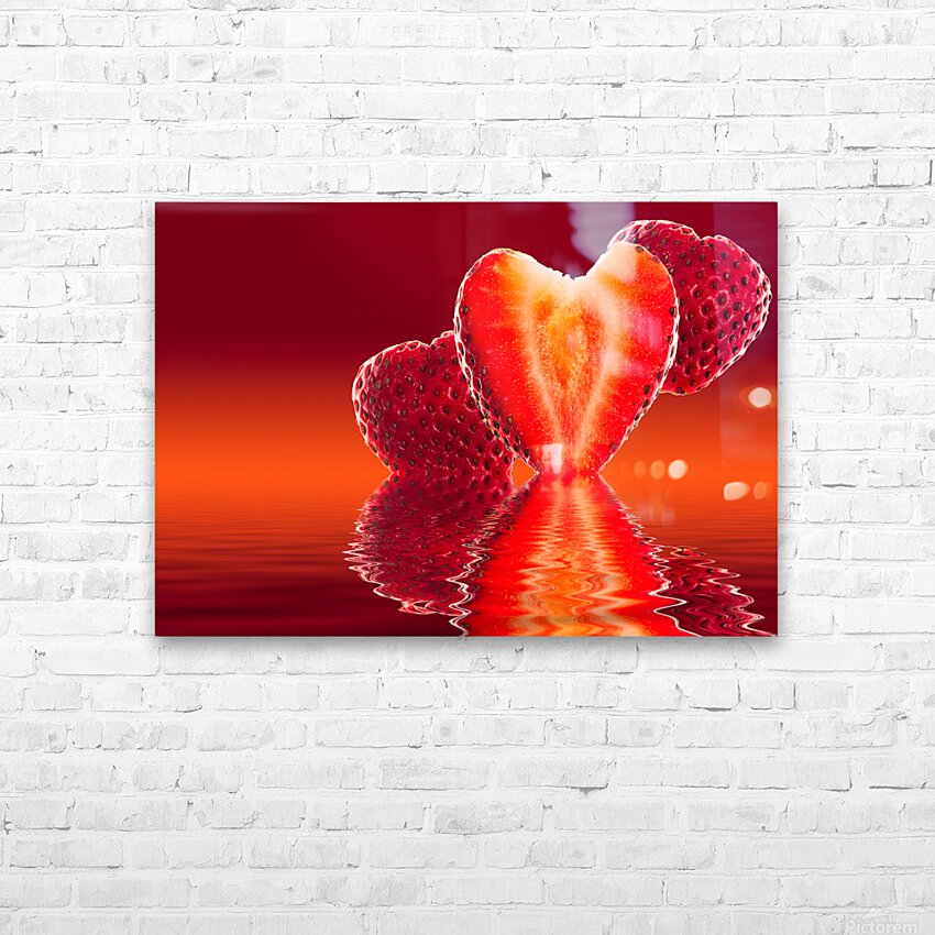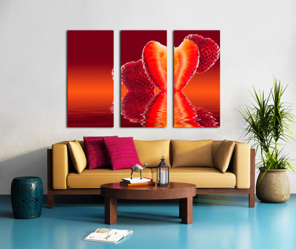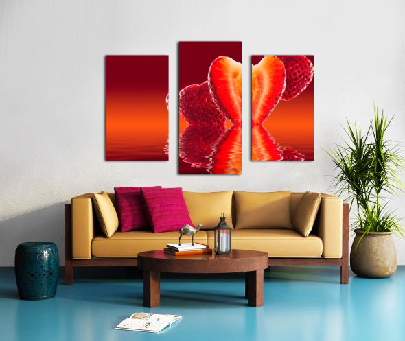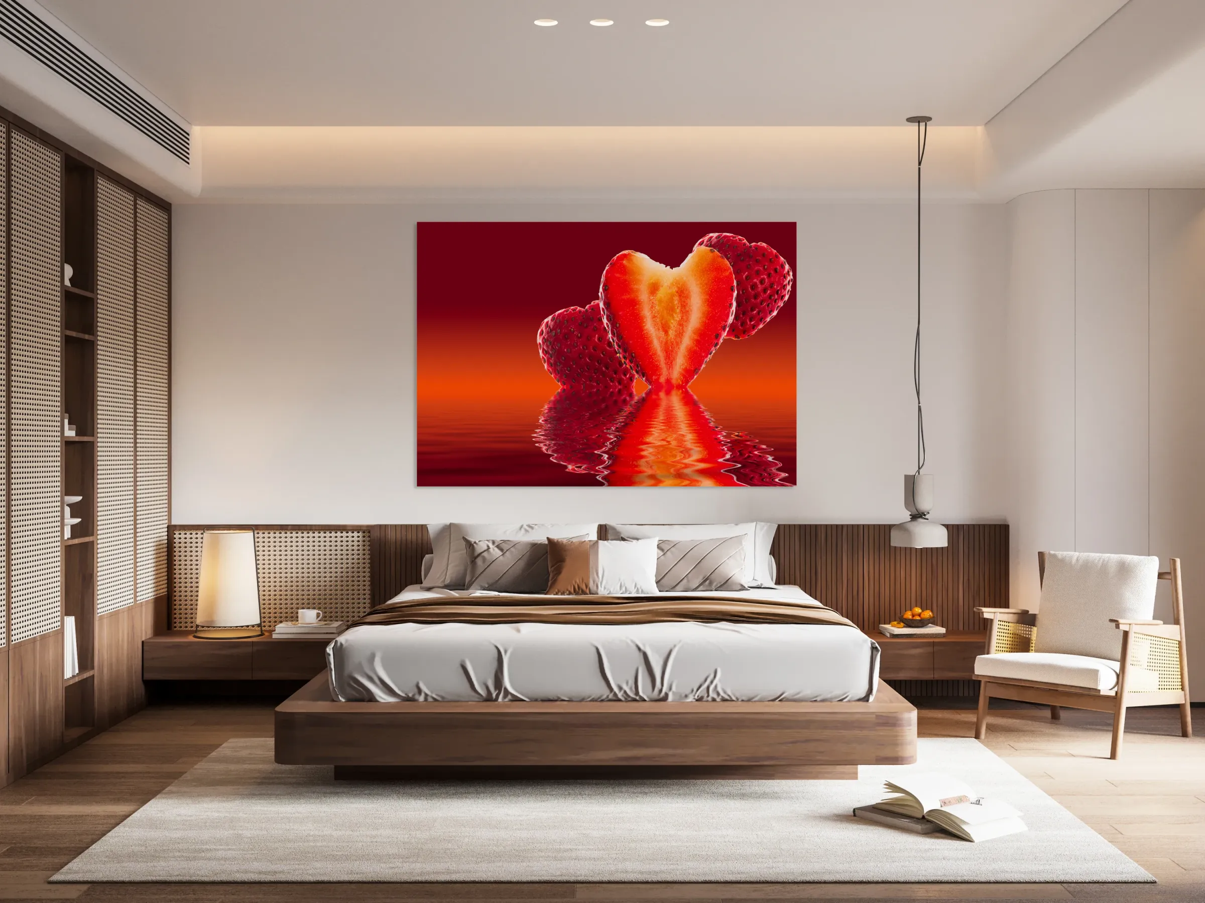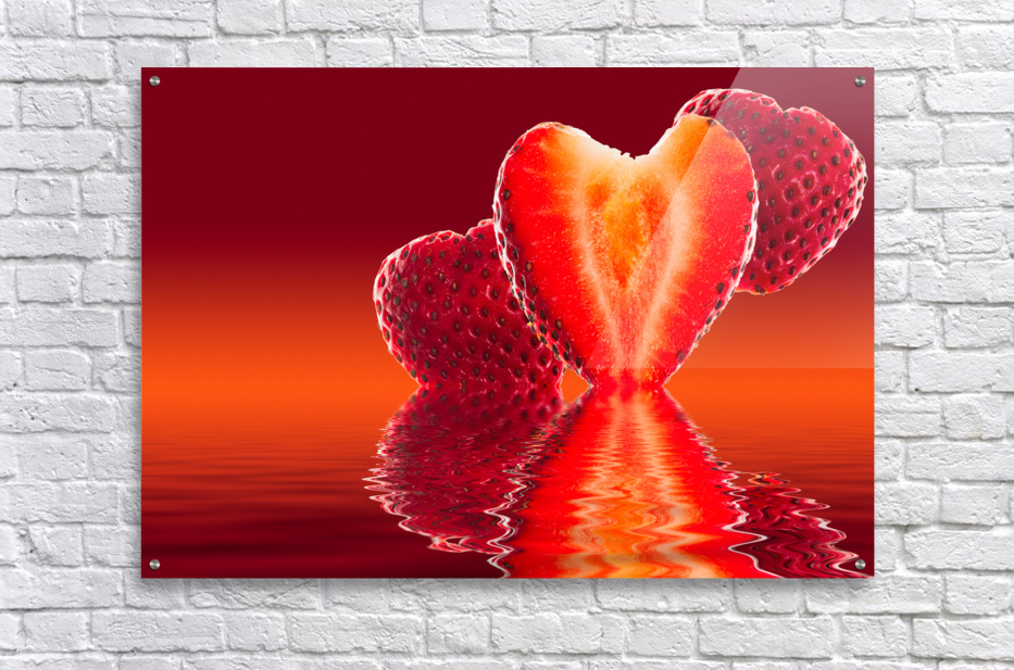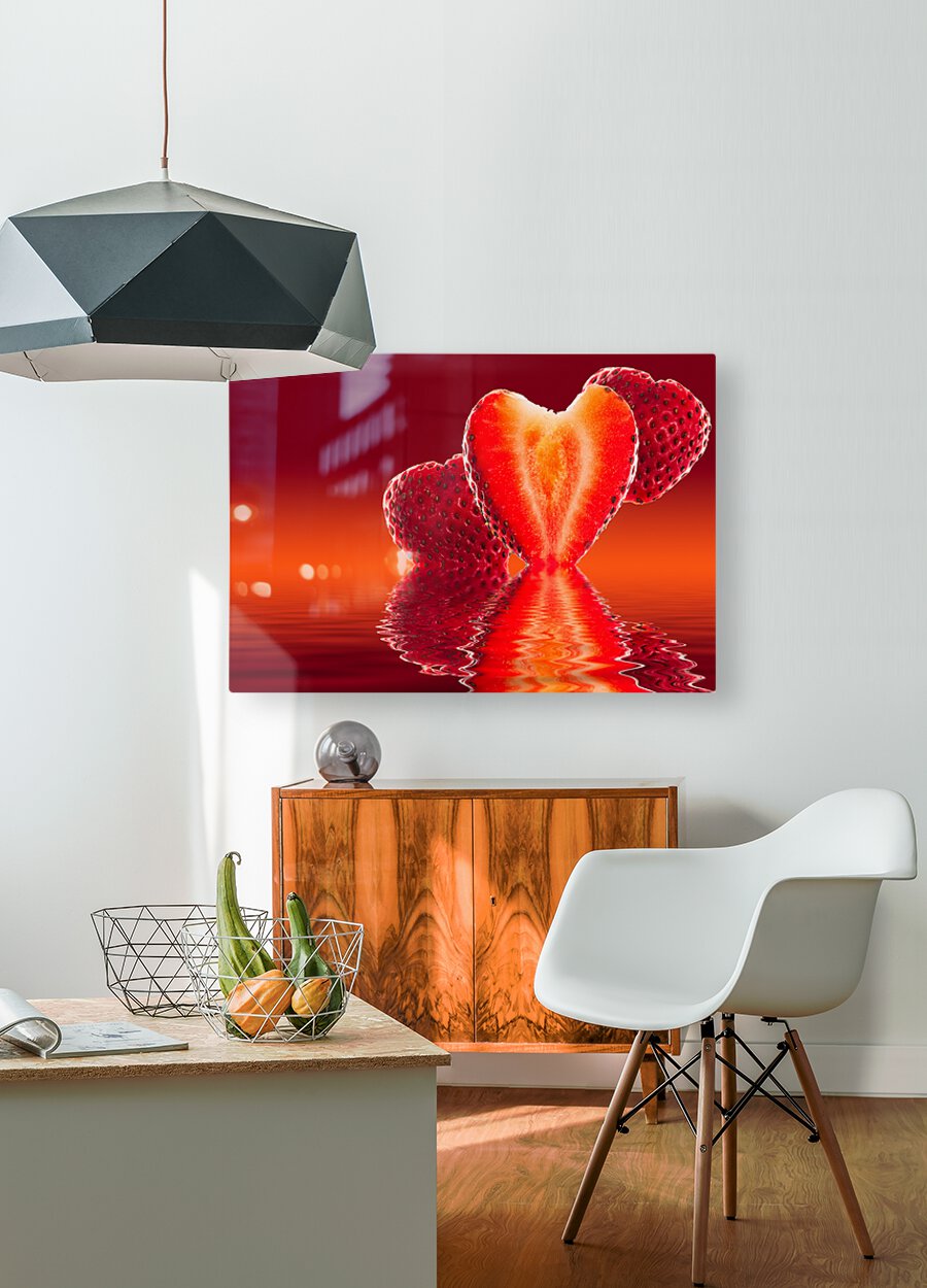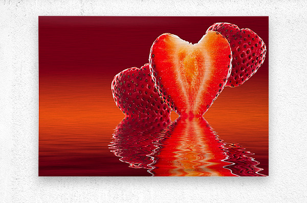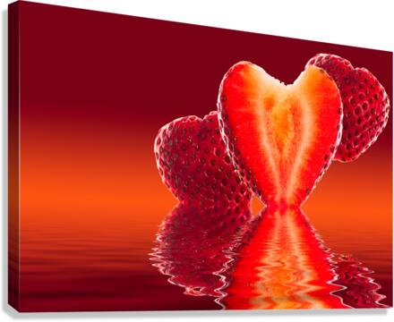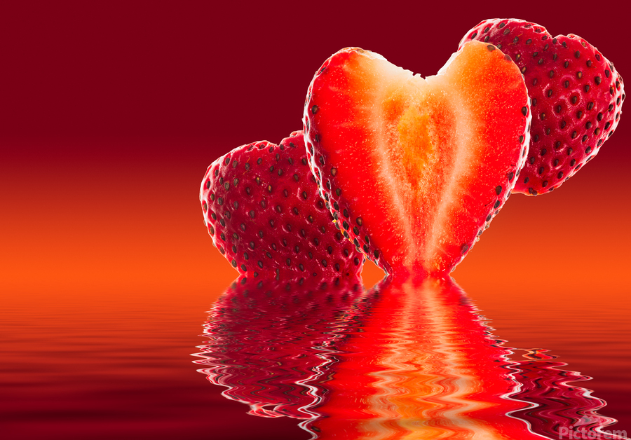 ABOUT THIS ARTWORK: FRESH SLICED STRAWBERRY IN HEART SHAPE REFLECTED