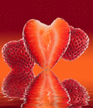 FRESH SLICED STRAWBERRY IN HEART SHAPE REFLECTED