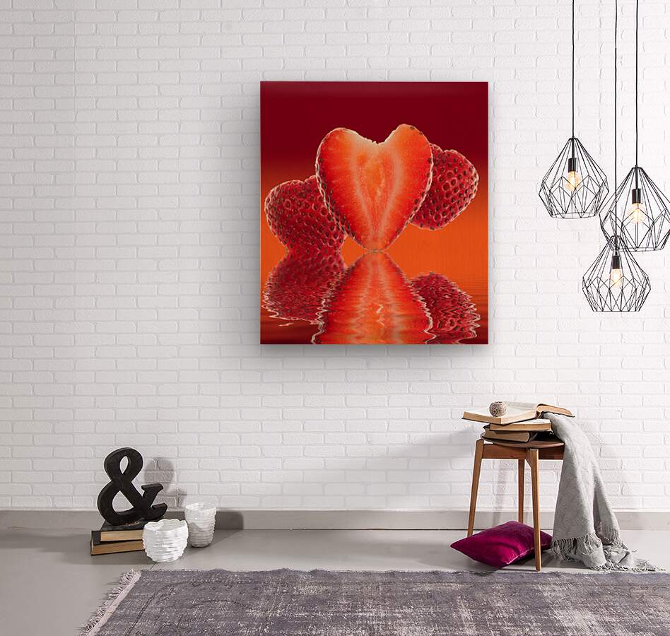 ABOUT THIS ARTWORK: FRESH SLICED STRAWBERRY IN HEART SHAPE REFLECTED