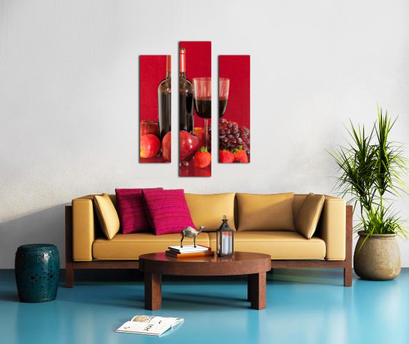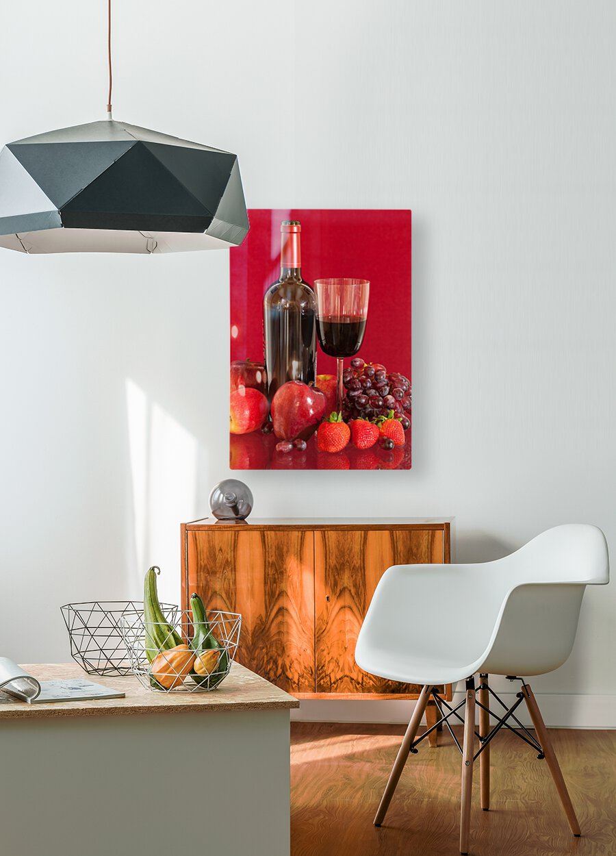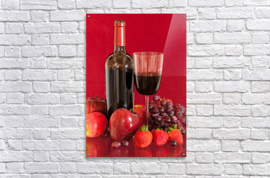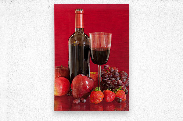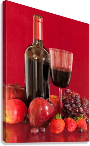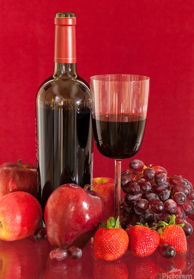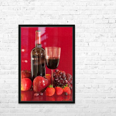 Get this artwork "Red wine bottle and fruit with glass" in a framed print.