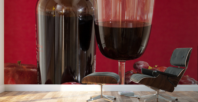 RED WINE BOTTLE AND FRUIT WITH GLASS