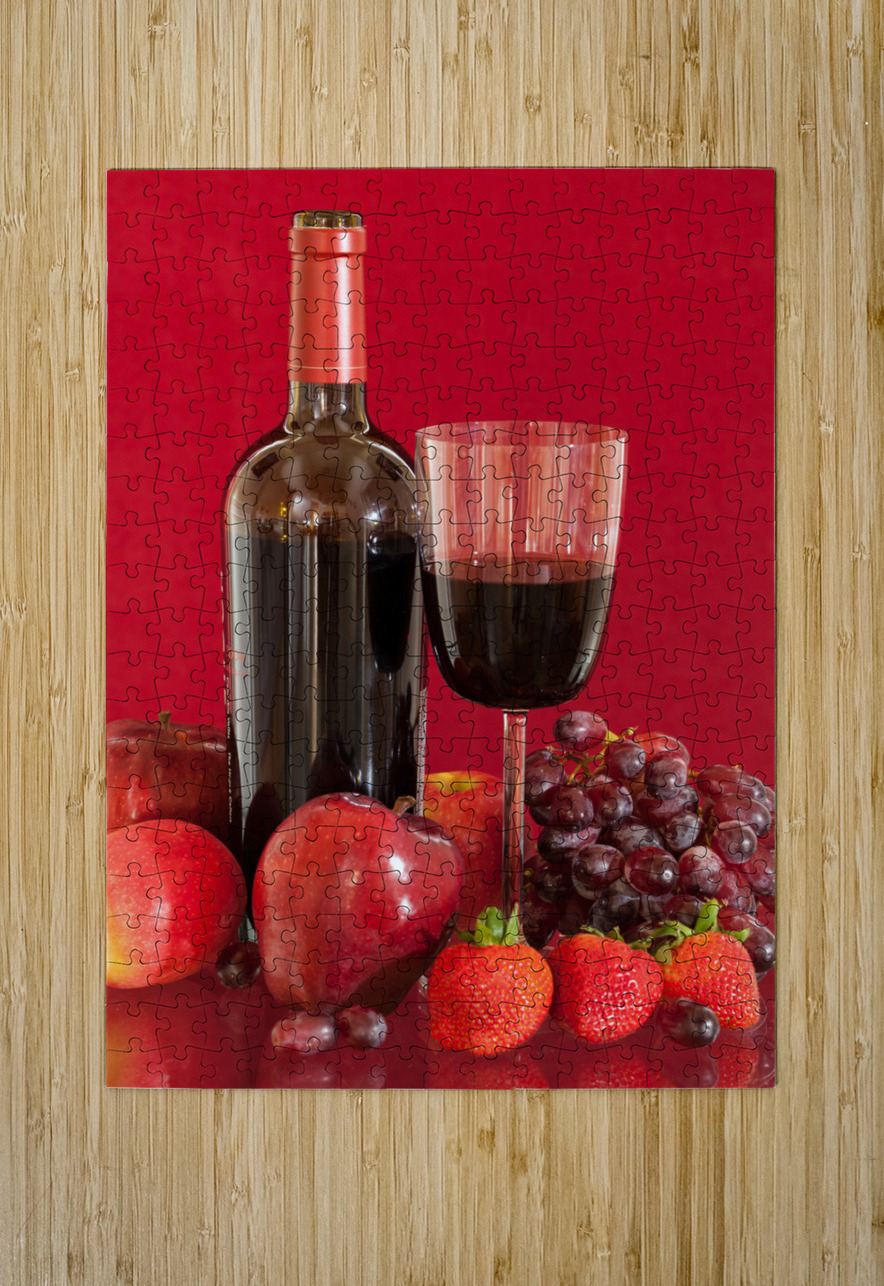 Red wine bottle and fruit with glass Steve Heap Puzzle printing