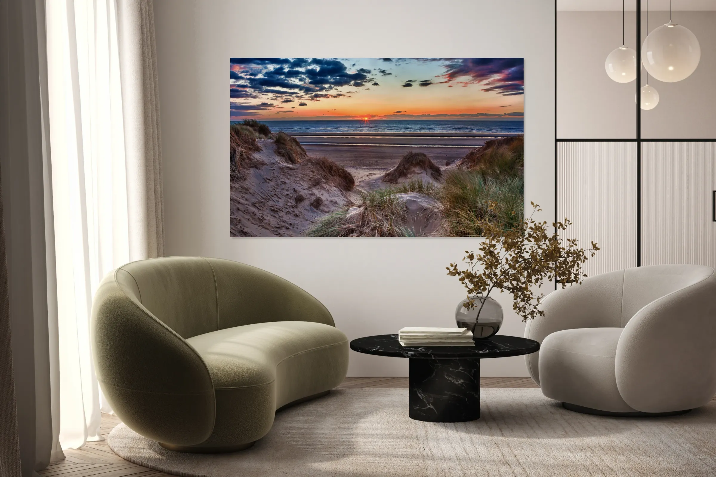 Sunset over Formby Beach through dunes Frame print
