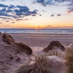 SUNSET OVER FORMBY BEACH THROUGH DUNES