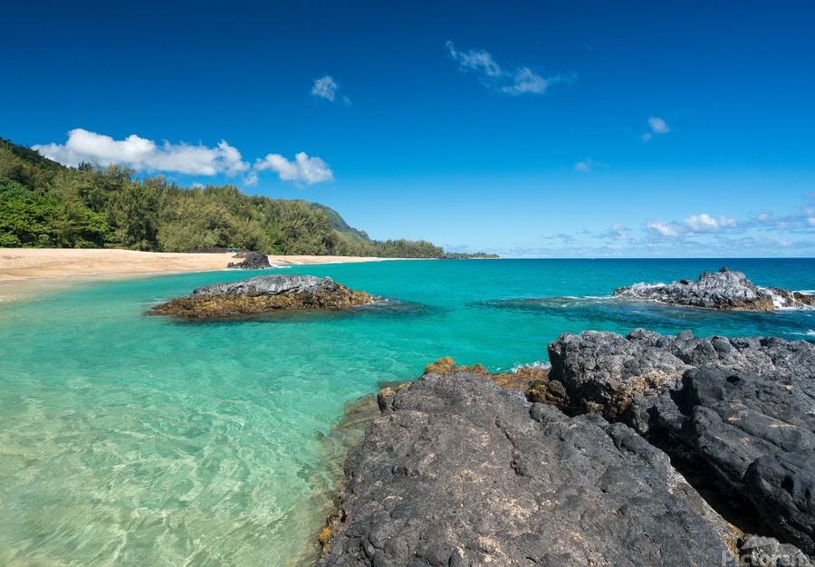 Get this artwork "Lumahai Beach Kauai with rocks" in a framed print.