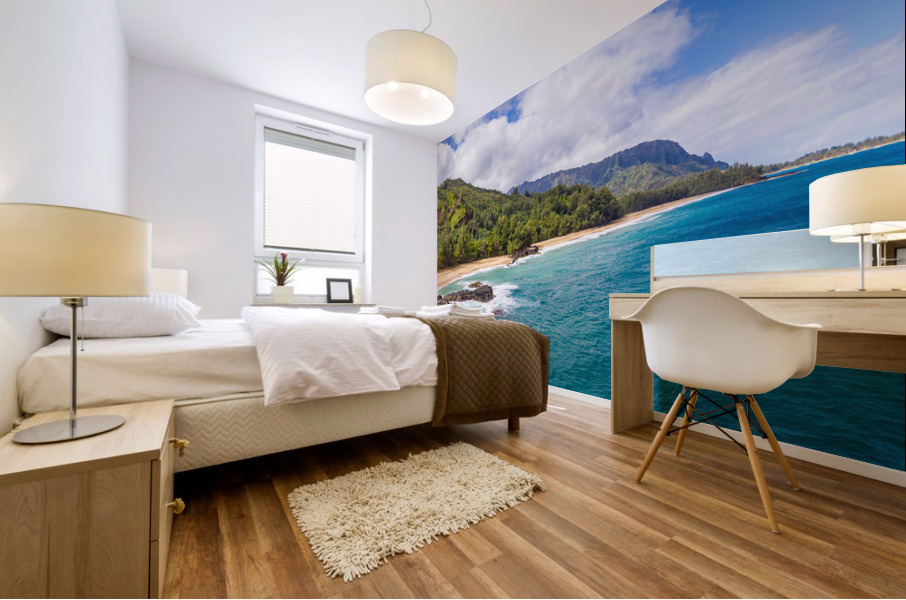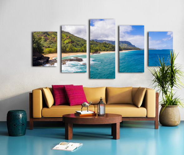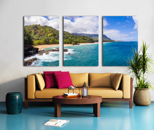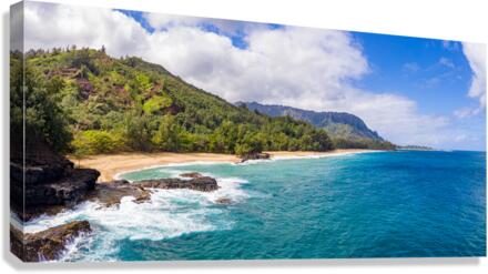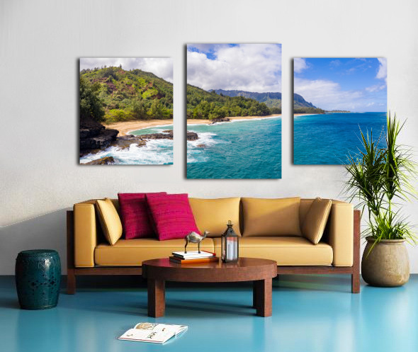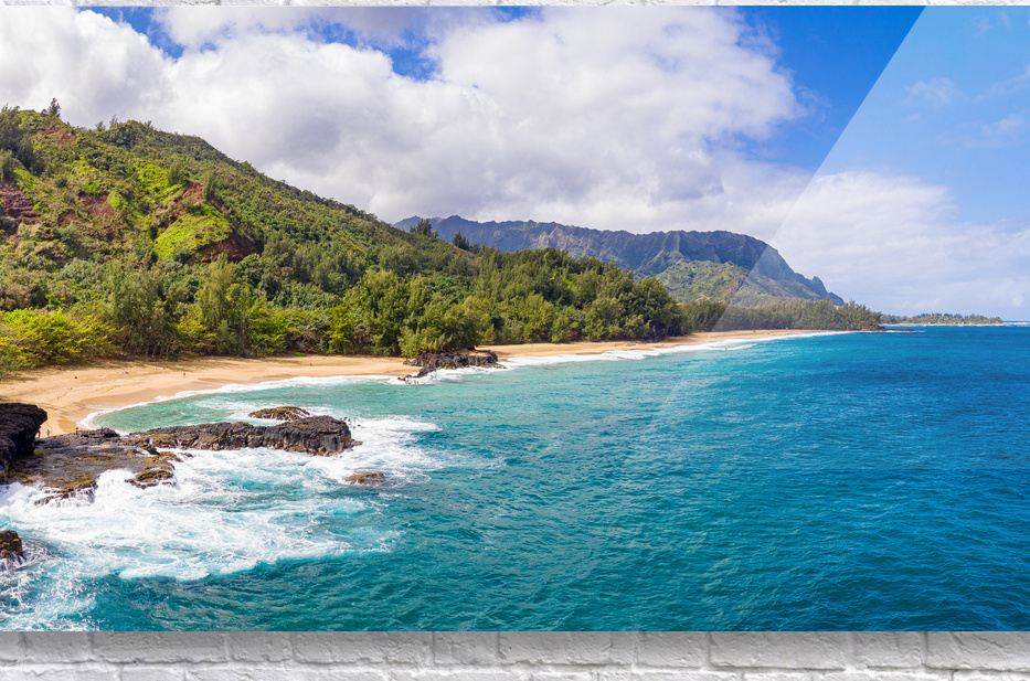 Get this artwork "Aerial drone shot of Lumahai Beach " in a framed print.