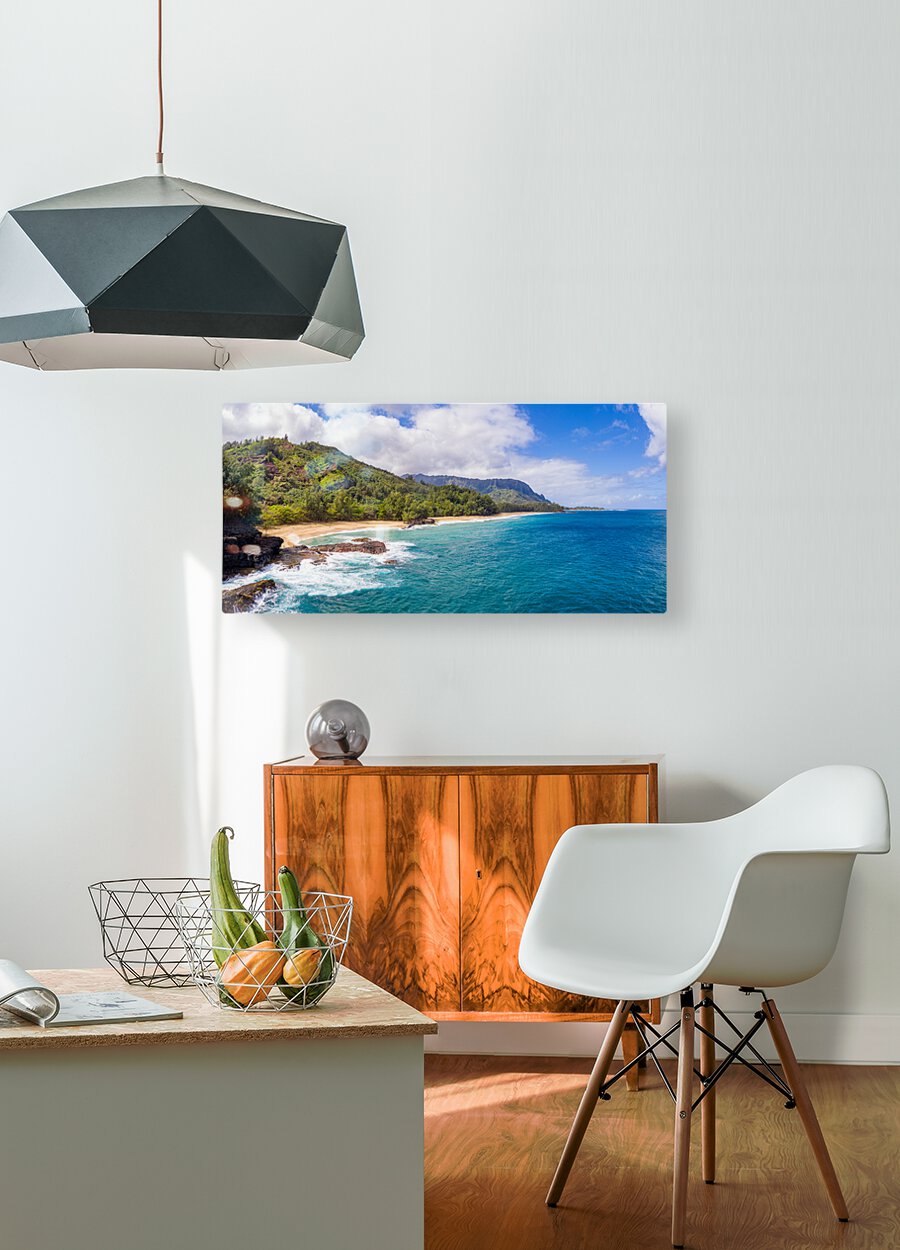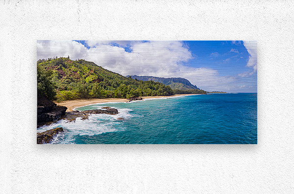 Aerial drone shot of Lumahai Beach   Wood print