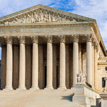 Facade of US Supreme court in Washington DC on sunny day