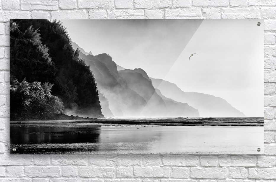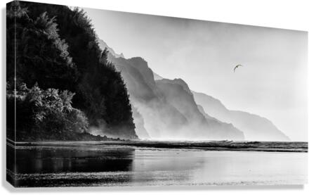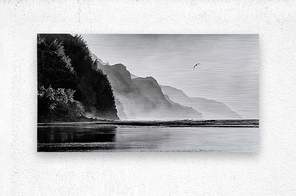 Black and white version of Albatross soaring over the Na Pali coast by Kee beach in Kauai at sunset