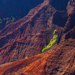Trees in the bottom of the steep rock sides of Waimea Canyone on Kauai