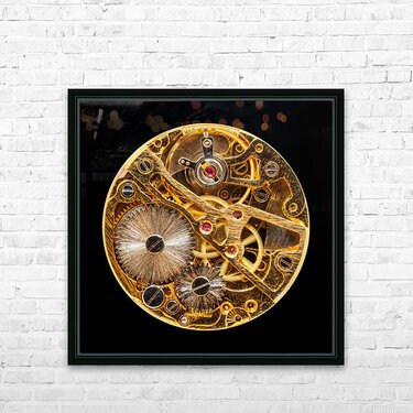 ABOUT THIS ARTWORK: INTERIOR OF ANTIQUE MECHANICAL WATCH