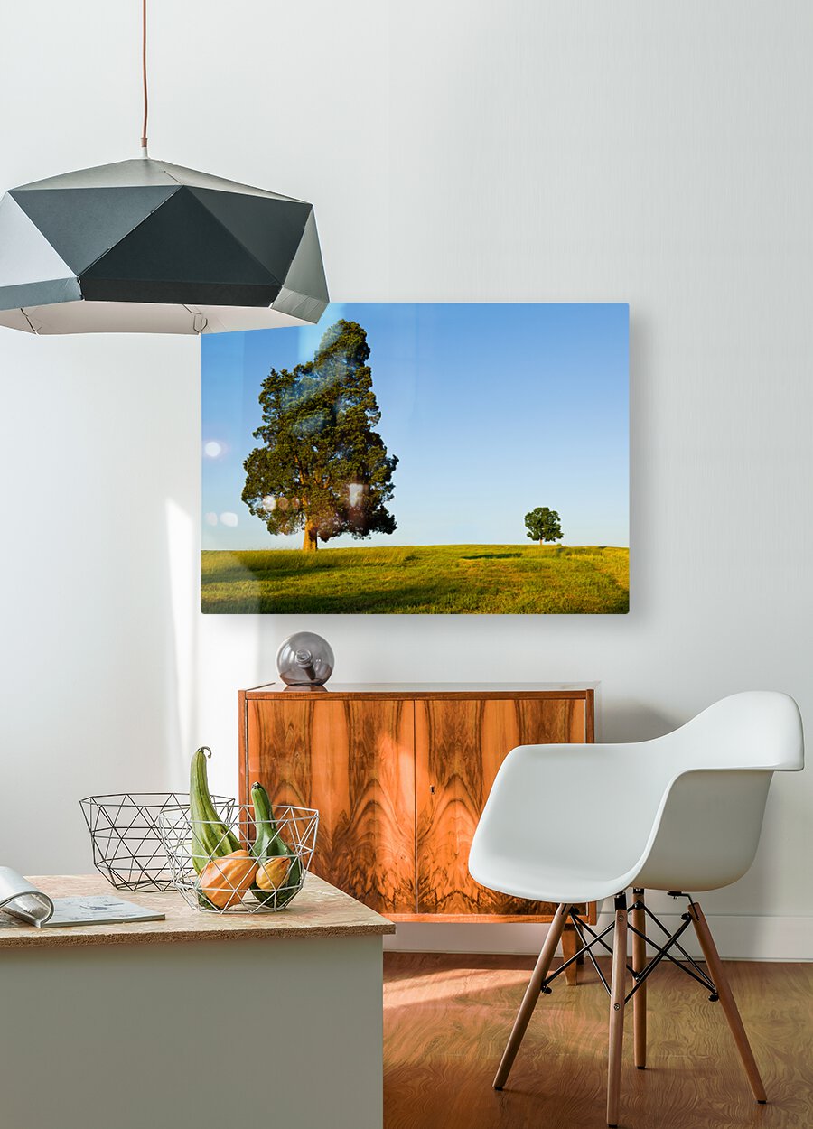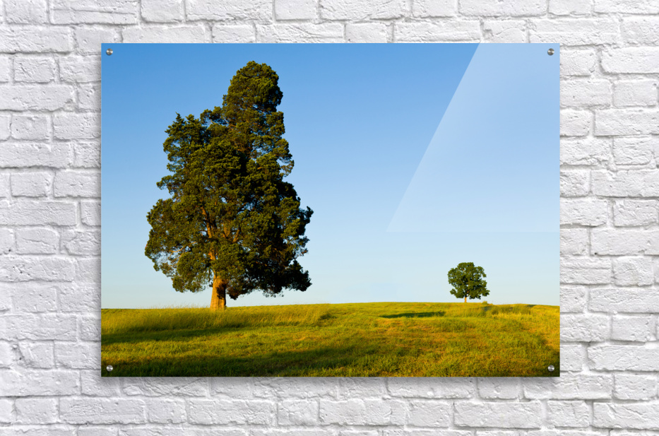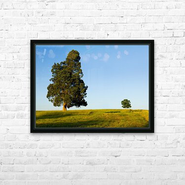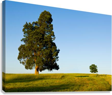 Get this artwork "Large tree dominates small tree on hillside" in a framed print.