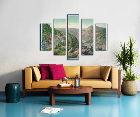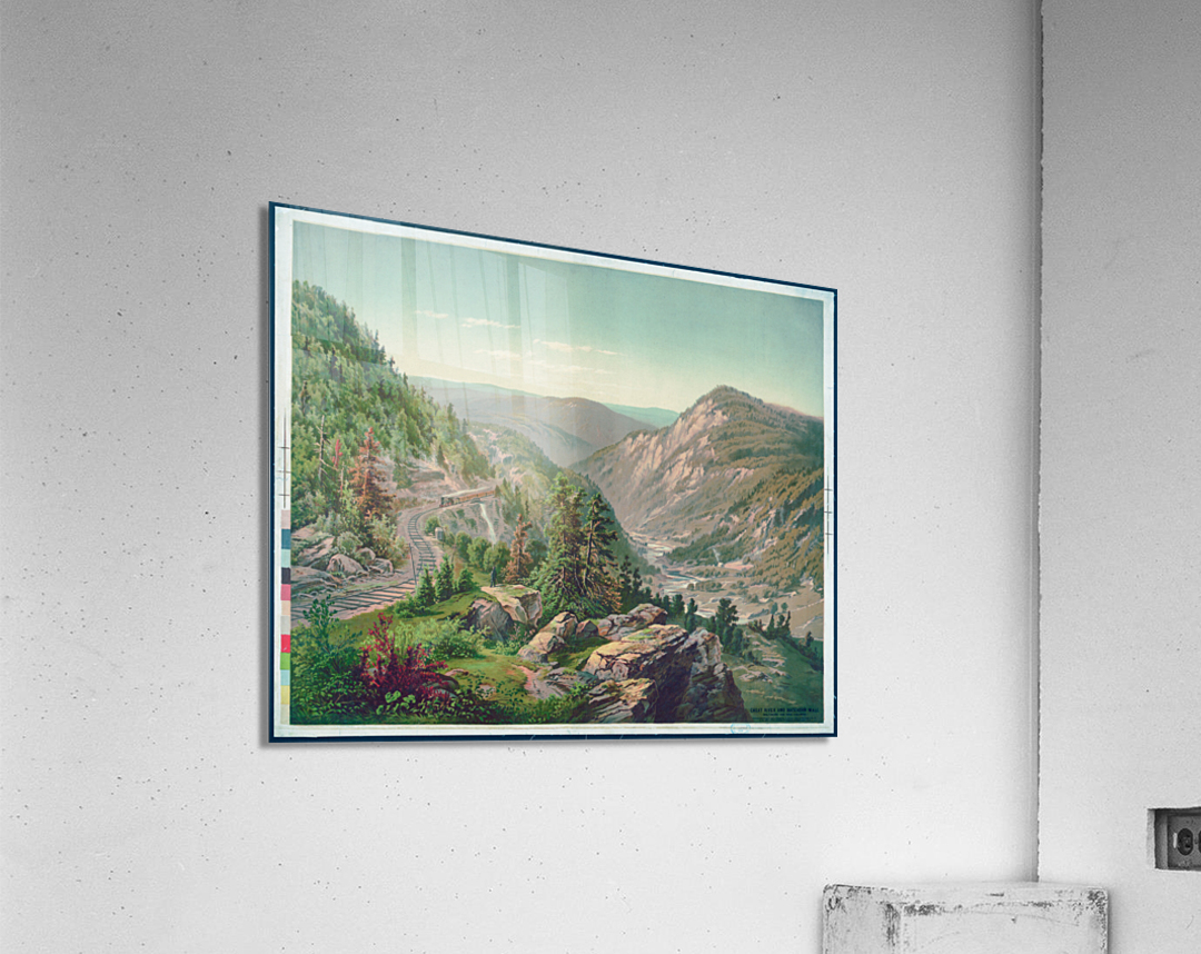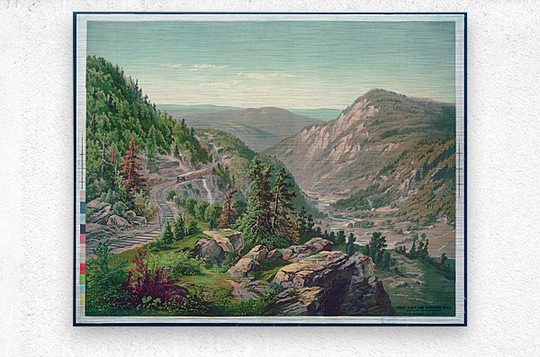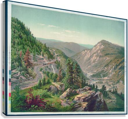 A digitally restored painting of a train from the Baltimore and Ohio company at the top of the almost 3000 foot high grade to get over the Appalachian Mountains near Rowlesburg in West Virginia. This 1878 painting shows the Cheat River in the valley and has been restored from the original file held by the Library of Congress